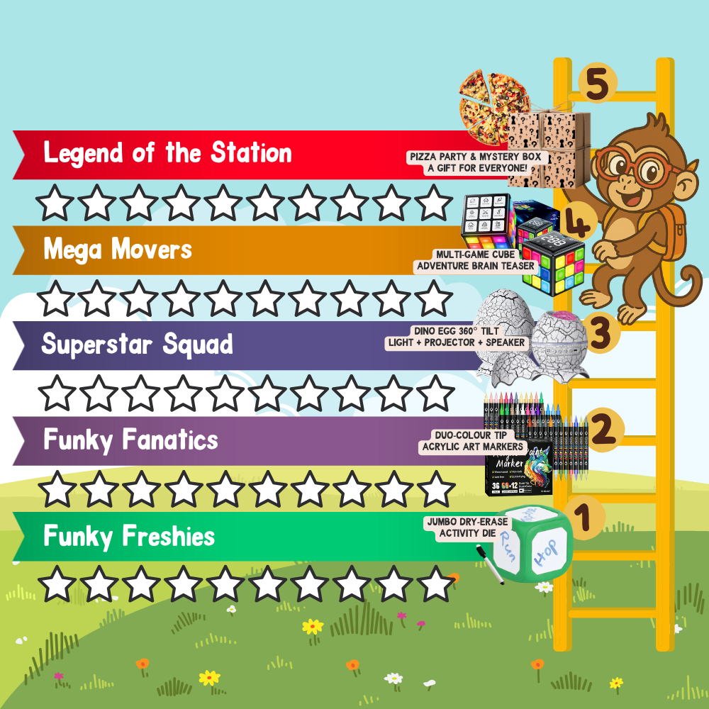 When classes reach milestones on the map, they unlock prizes! These may include activity resources, group games, creative kits, or mystery boxes filled with fun surprises for the whole class to enjoy.