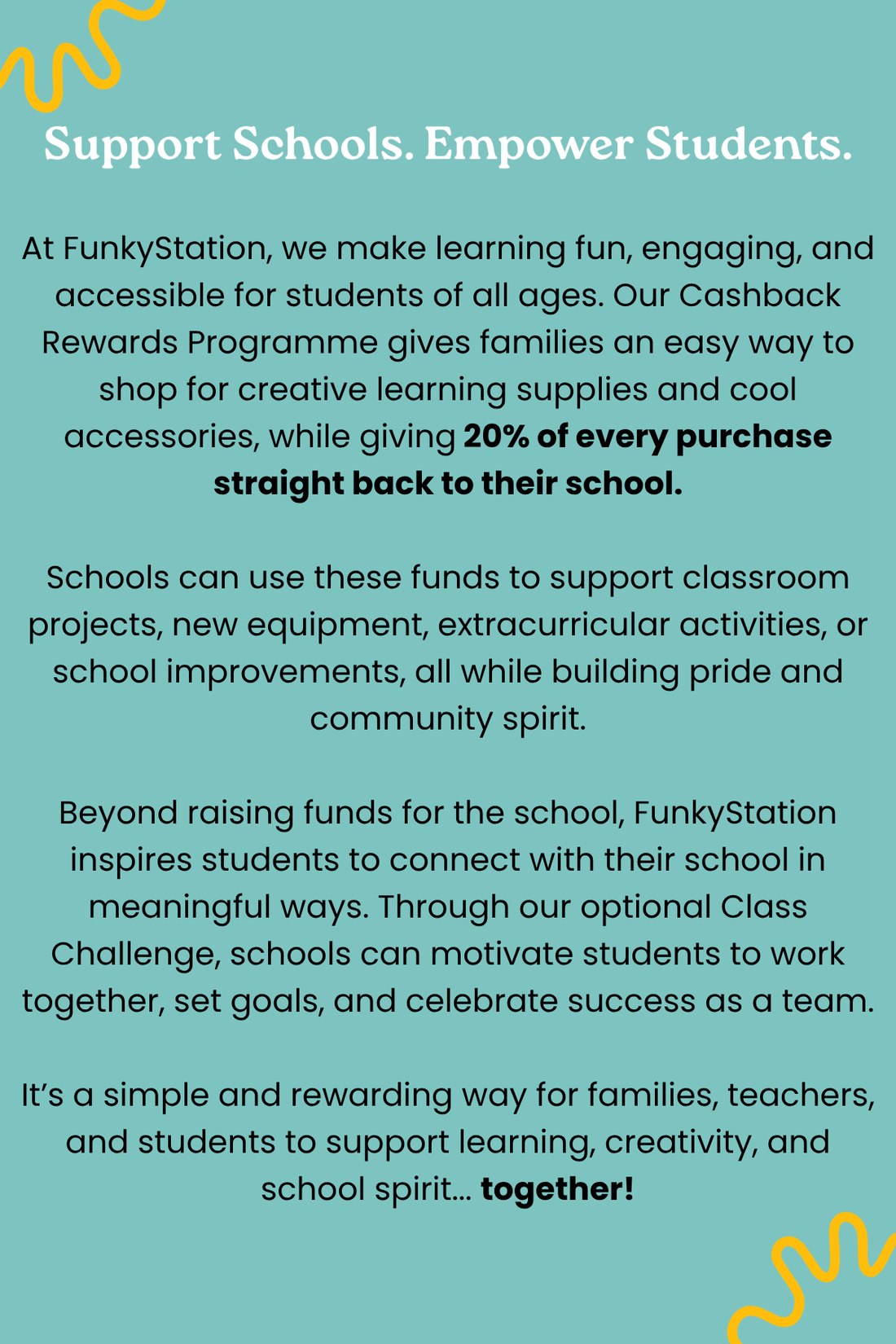 Students can purchase FunkyStation packs for themselves or as gifts to give away, or share the fundraiser with family and friends who want to support the school while grabbing some fun learning supplies or accessories too.